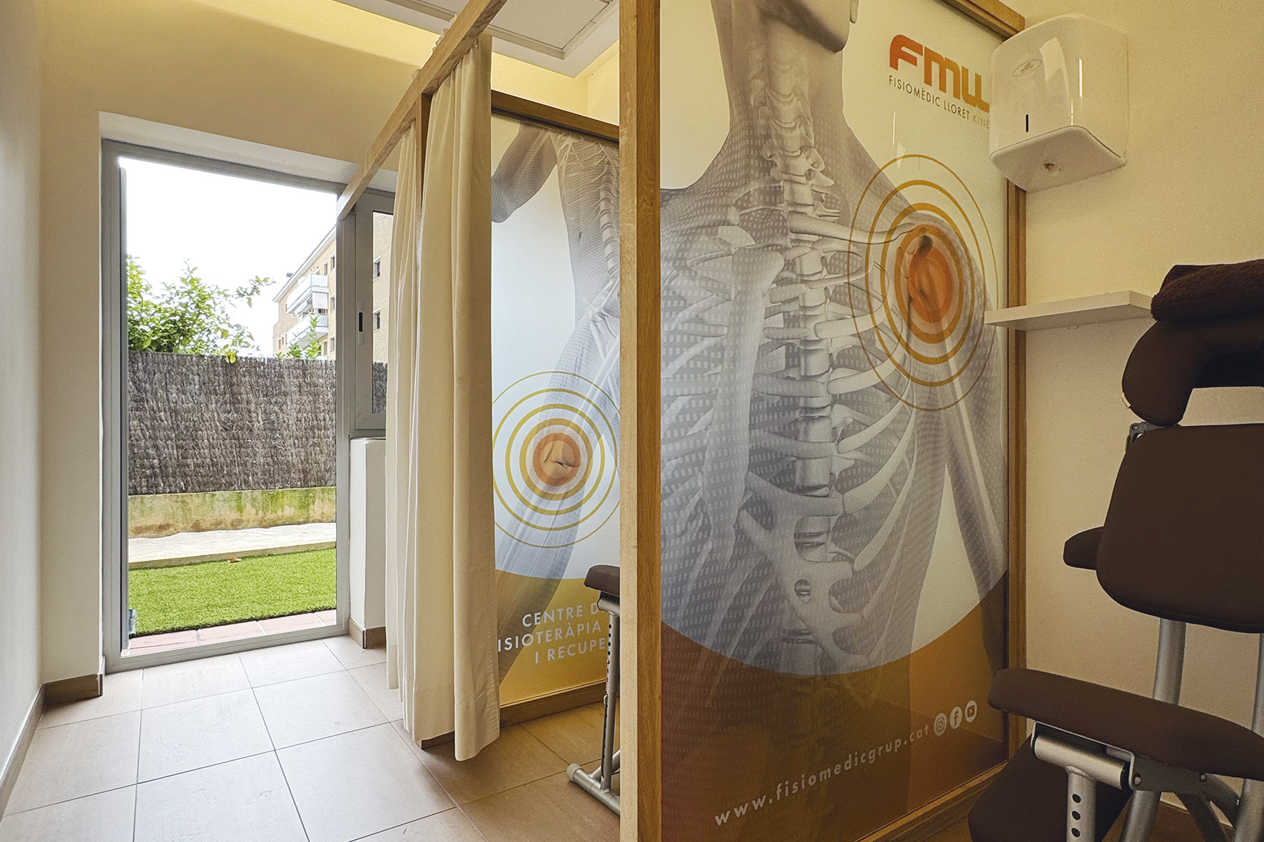 Des del punt de vista etimològic, fisioteràpia significa tractament mitjançant agents físics com l’exercici terapèutic, el massatge, termoteràpia, mobilitzacions... A FMG la fisioteràpia s’aplica de manera personalitzada per tal de millorar l’estat del benestar del pacient sobretot dins del marc de l’aparell locomotor.