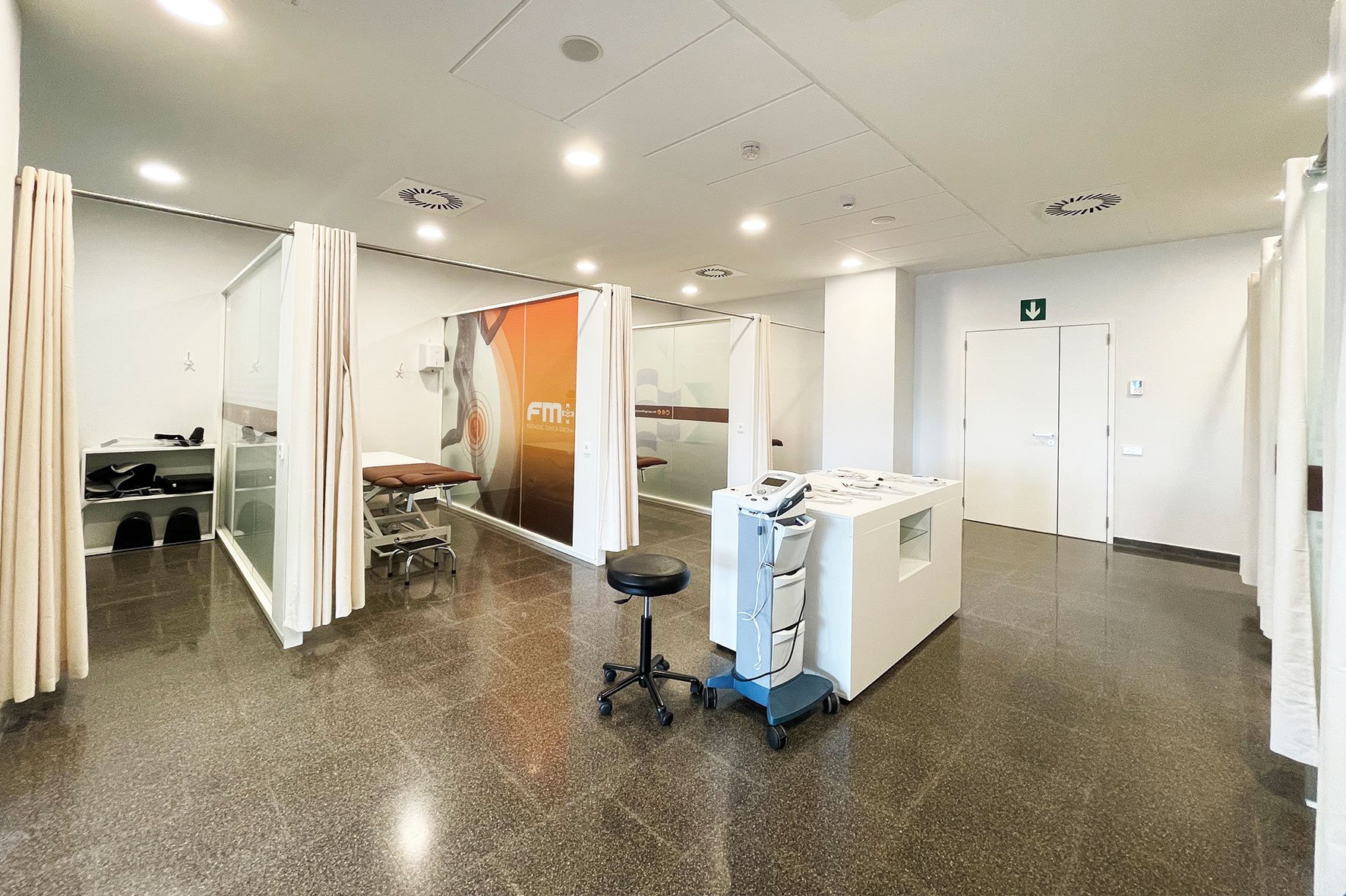 Artromod de hombro, Flujo aire frío, Deltatermia, Magnetoterapia solenoidal, Láser de alta potencia, Láser LightForce®, Compex Wireless, Indiba / Winback, Tracciones mecánicas, Plataforma vibratoria médica, Polia cónica inercial, Presoterapia, Manuther superinductiva, Vibalance y Zamar.