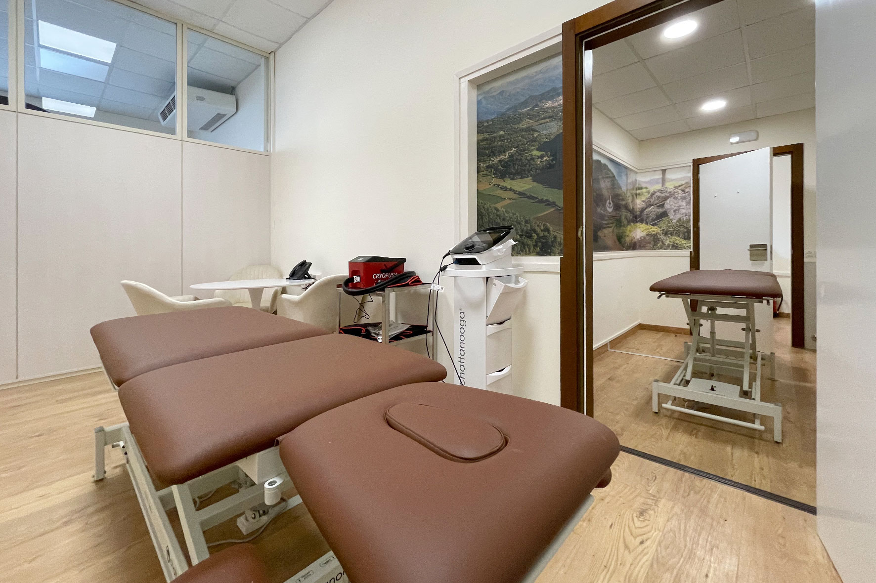 Artromod de hombro, Flujo aire frío, Deltatermia, Magnetoterapia solenoidal, Láser de alta potencia, Láser LightForce®, Compex Wireless, Indiba / Winback, Tracciones mecánicas, Plataforma vibratoria médica, Polia cónica inercial, Presoterapia, Manuther superinductiva, Vibalance y Zamar.